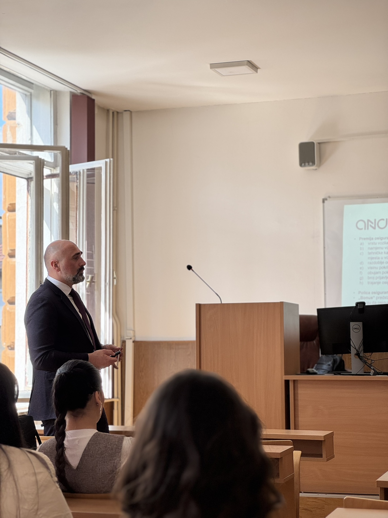 Studenti su imali priliku upoznati se s ključnim pravnim, regulatornim i praktičnim aspektima ove izuzetno važne oblasti osiguranja. Poseban naglasak stavljen je na ulogu obveznih osiguranja u prometu u zaštiti oštećenih osoba, odnosno osoba kojim je prouzročena šteta uporabom motornih vozila, kao i na značaj ove vrste osiguranja za pravnu sigurnost i stabilnost tržišta. Tom prilikom, između ostalog,  istaknuto je da obvezna osiguranja u prometu zauzimaju posebno važno mjesto u sektoru osiguranja, imajući u vidu da osiguranje od automobilske odgovornosti čini 58% portfelja neživotnih osiguranja u Federaciji BiH.