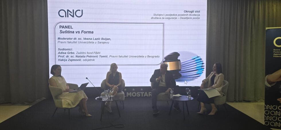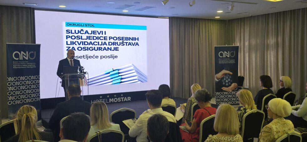 U Hotelu Mostar je 1.7.2025. godine u organizaciji Agencije za nadzor osiguranja Federacije Bosne i Hercegovine održan okrugli stol na temu posebnih likvidacija društava za osiguranje. Događaj je okupio stručnjake iz oblasti prava, ekonomije i osiguranja, predstavnike relevantnih institucija i akademske zajednice s ciljem analize dugotrajnih postupaka posebnih likvidacija osiguravajućih društava u Federaciji BiH, njihovih uzroka, posljedica i mogućih pravaca unapređenja regulatornog i institucionalnog okvira.