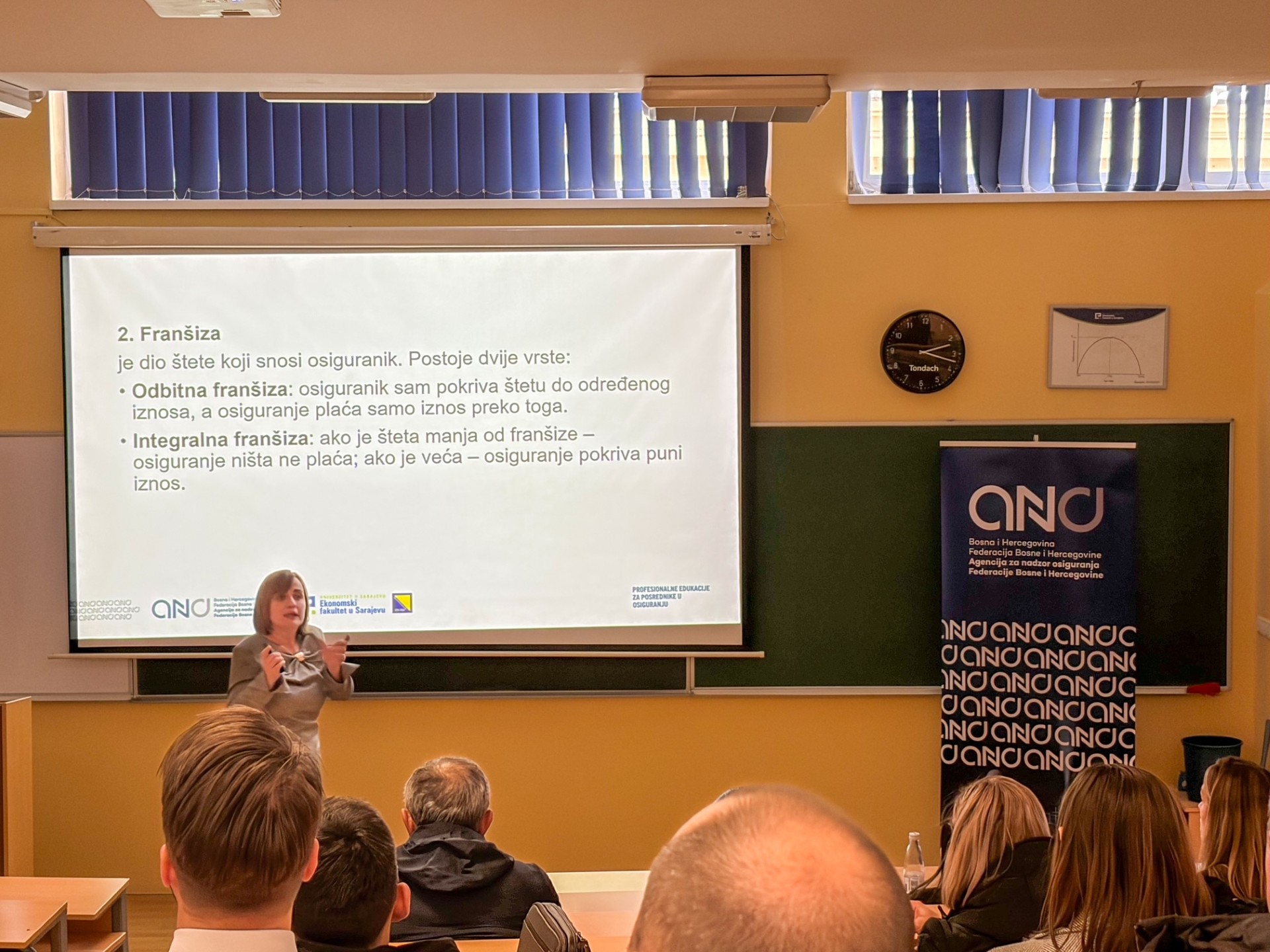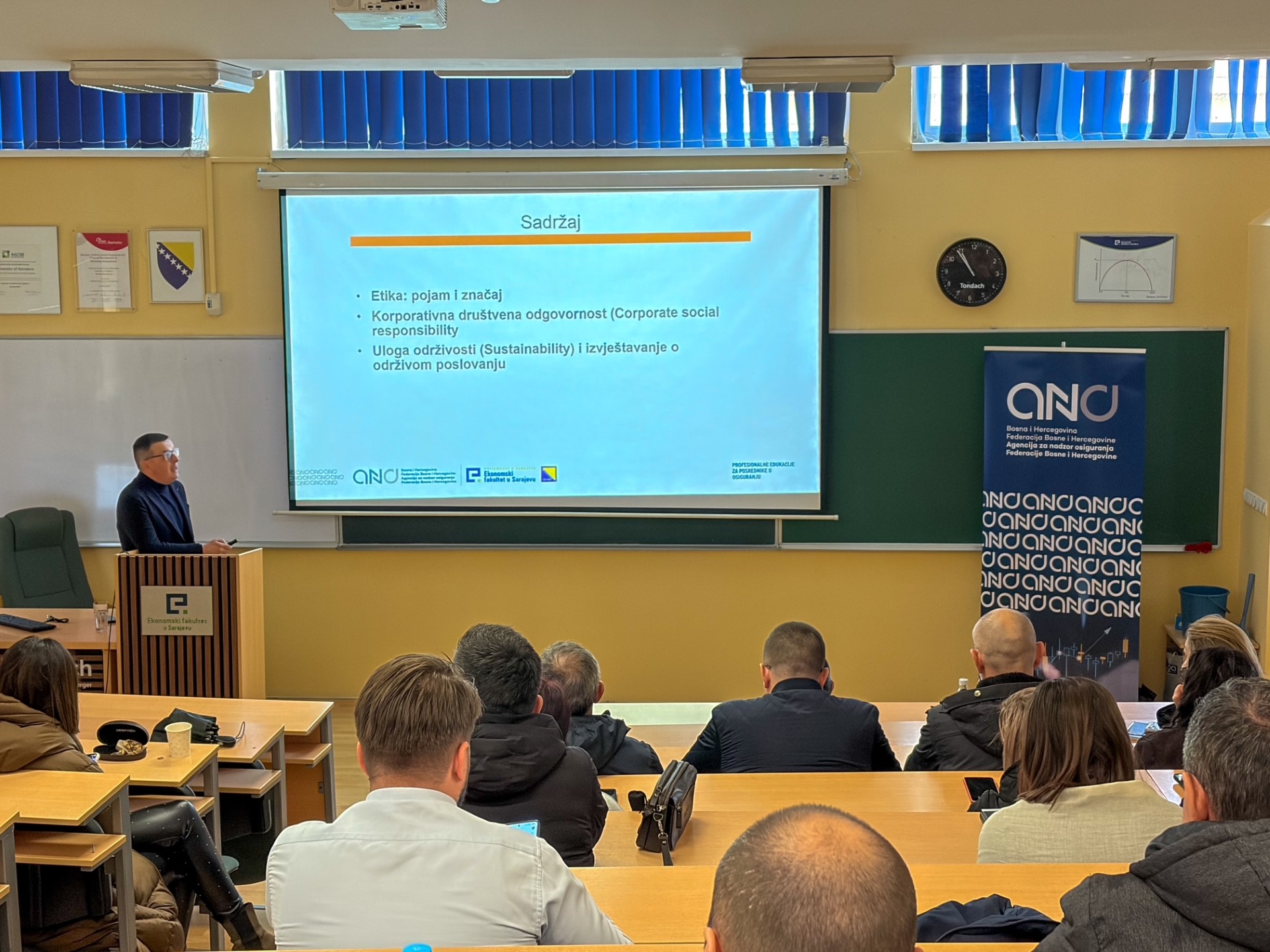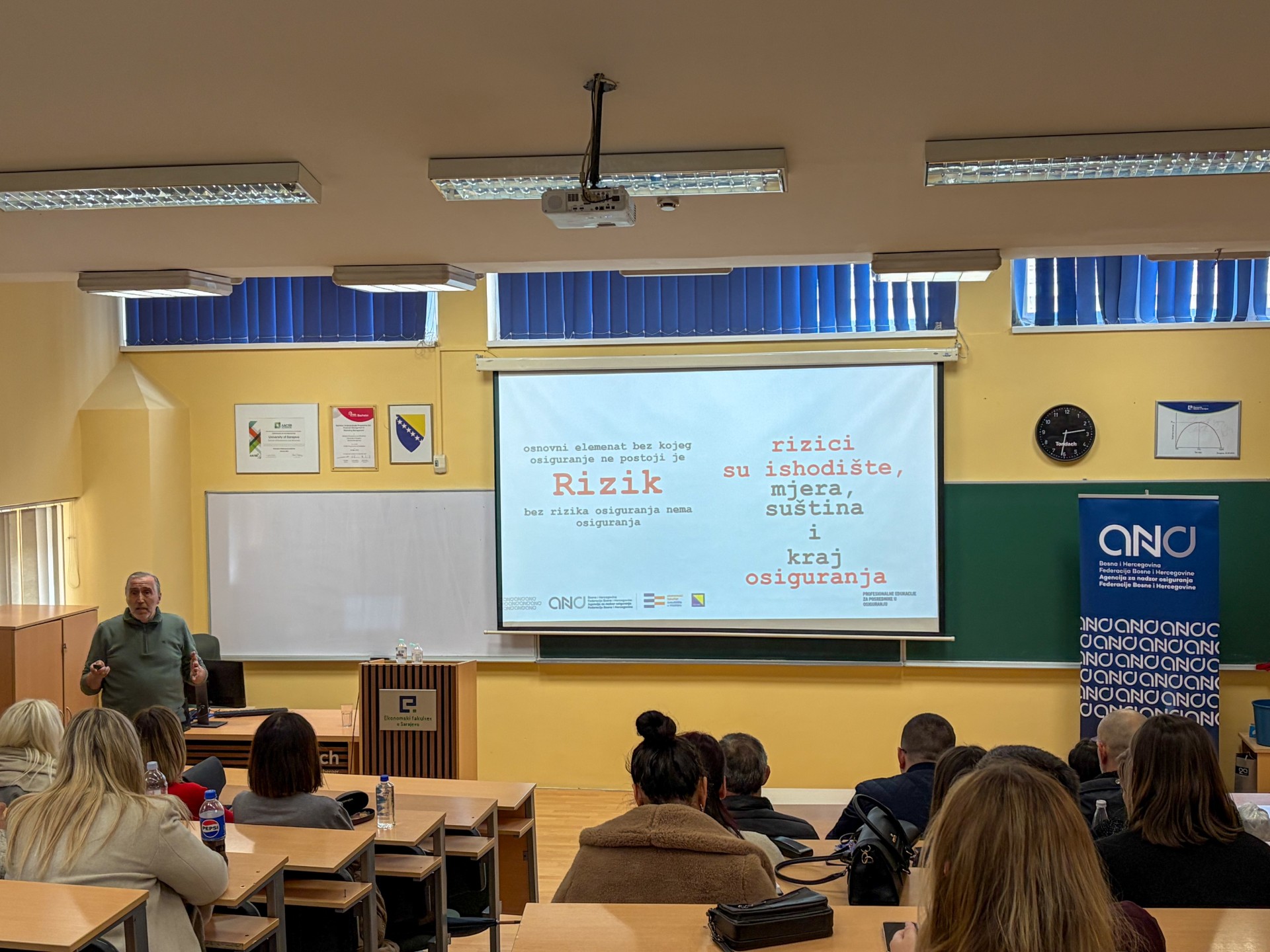 Agencija za nadzor osiguranja Federacije Bosne i Hercegovine, u saradnji s Ekonomskim fakultetom Univerziteta u Sarajevu i Centrom za edukaciju i istraživanje u osiguranju (CEIOS), uspješno je organizovala dvodnevnu obaveznu profesionalnu edukaciju za posrednike u osiguranju. Edukacija je održana 27. i 28. marta 2026. godine u prostorijama Ekonomskog fakulteta u Sarajevu.